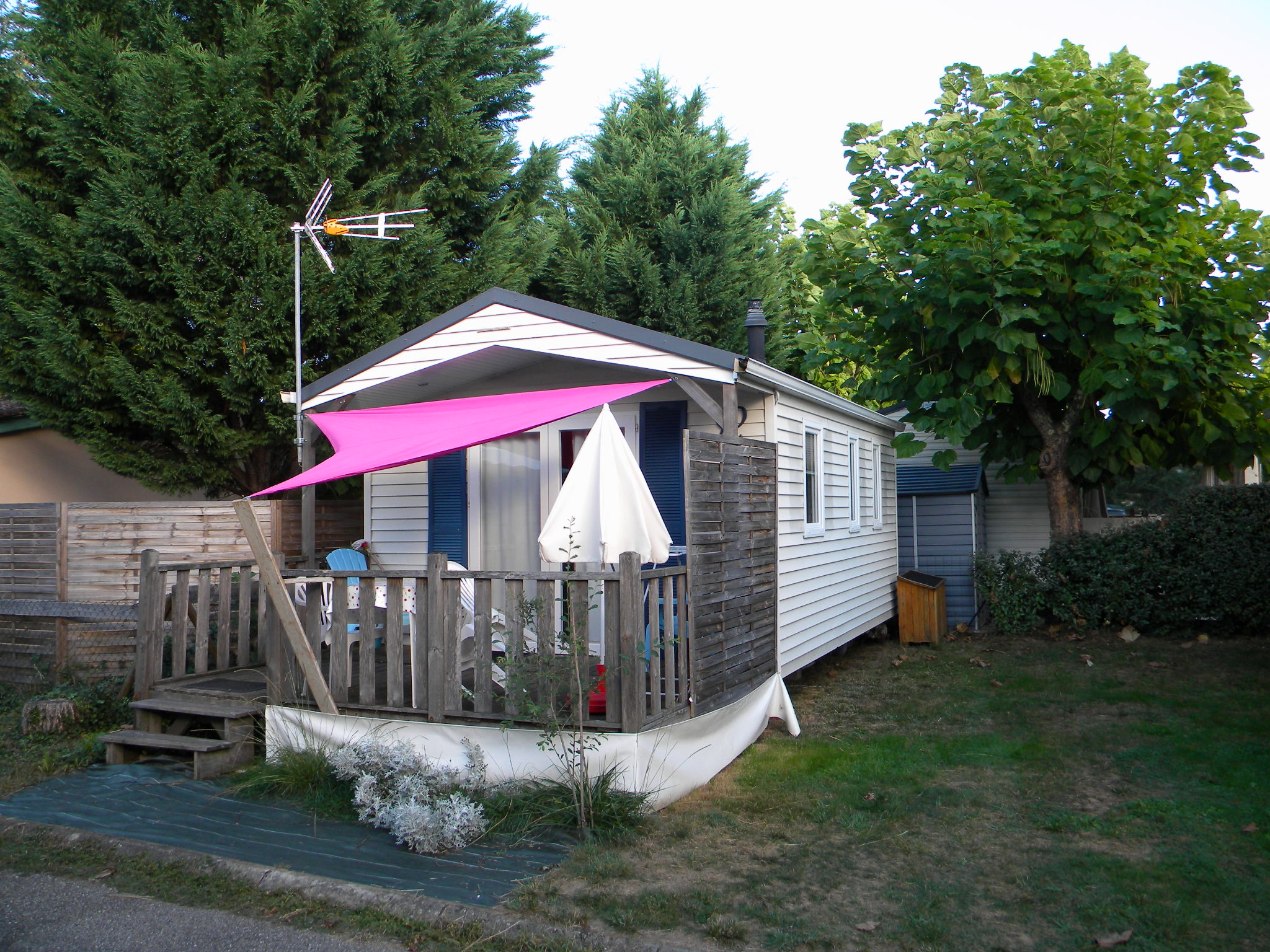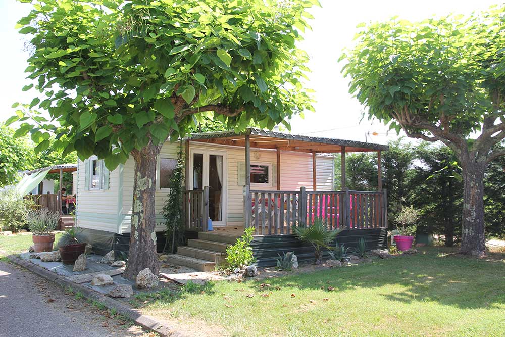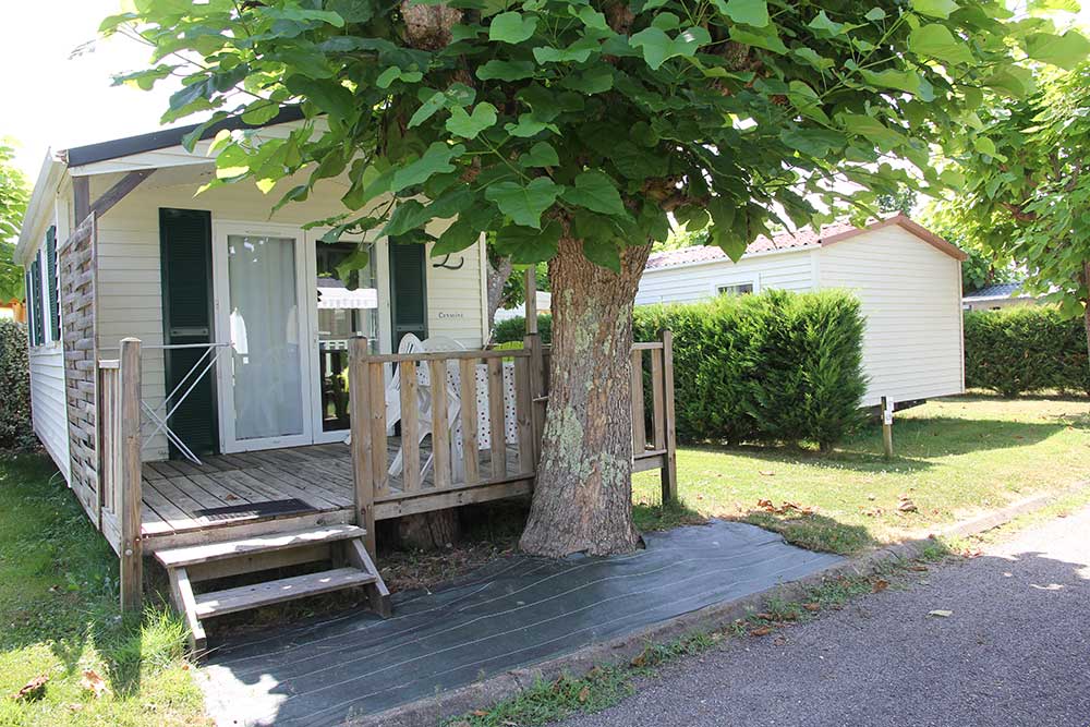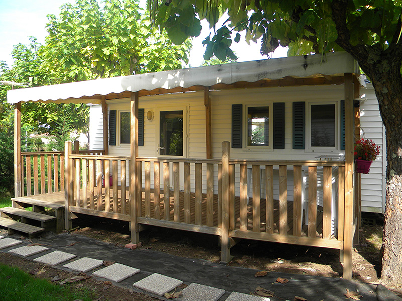 Situés en partie haute du camping, à une centaine de mètres de la rivière il accueille une famille de 5 personnes.